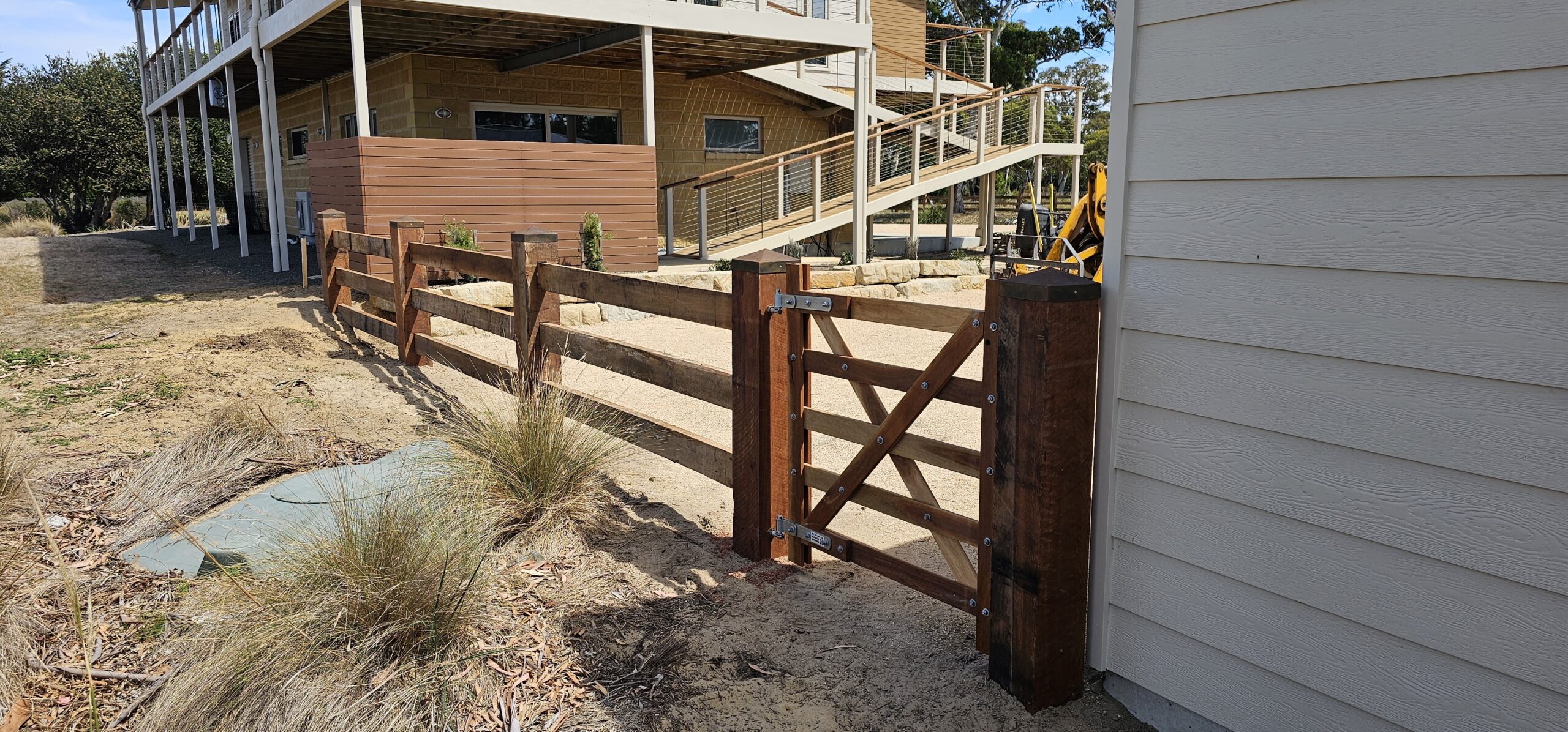 Standard posts are 1.2m high and 150 x 150mm, and rails are 150 x 50mm. We offer 1, 2, 3 or 4 rails.